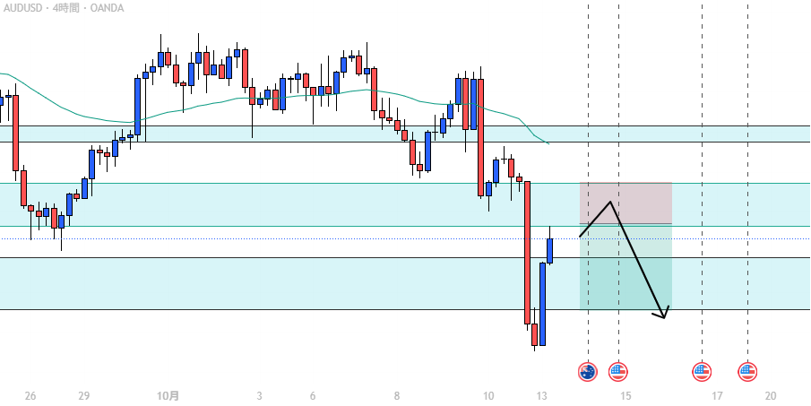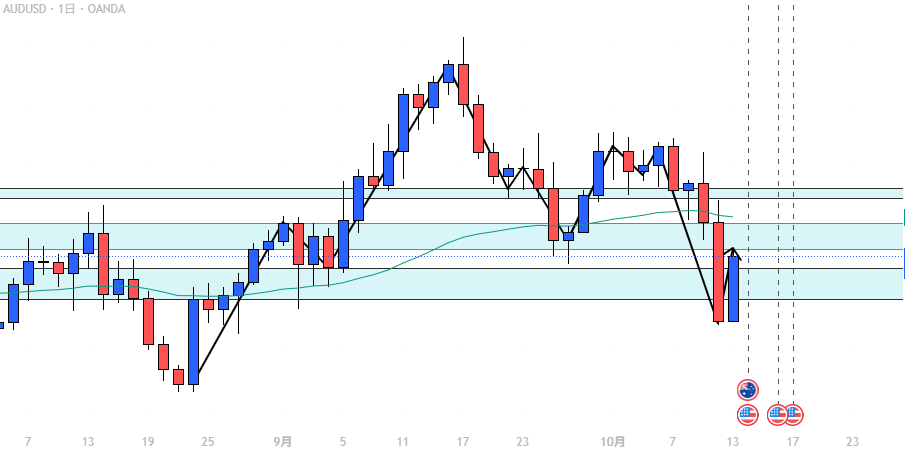 • AUD/USD: 3足揃いの下降トレンド。AOI反発を狙う局面。