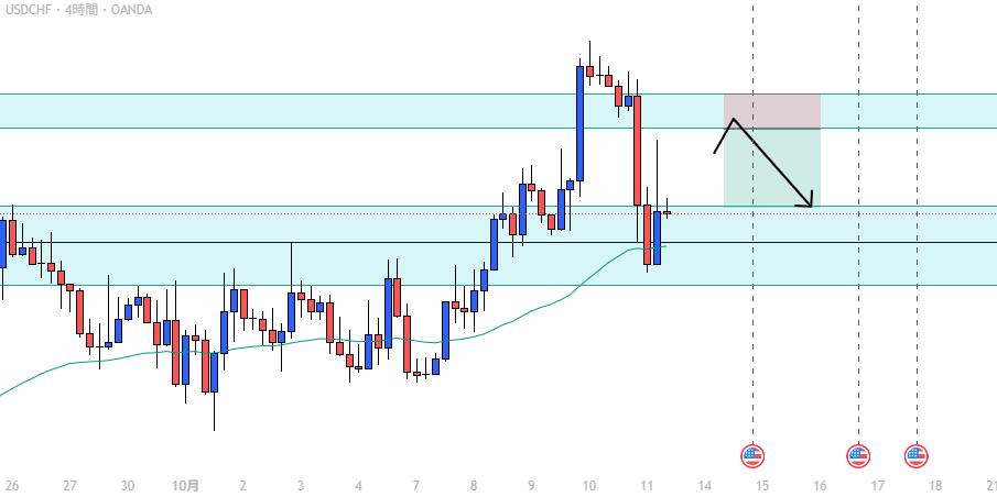 • USD/CHF: 逆三尊で上昇中だが、4Hでは戻り売りの可能性も。