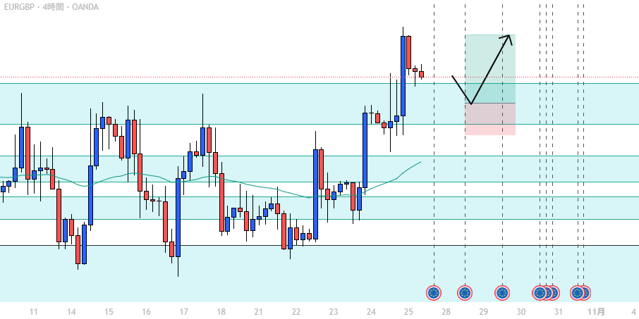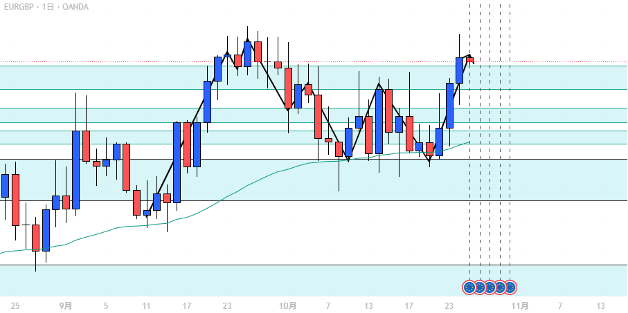 - EUR/GBP: ダブルボトム上昇継続。高値更新に期待。