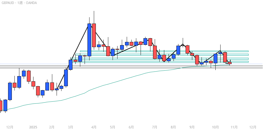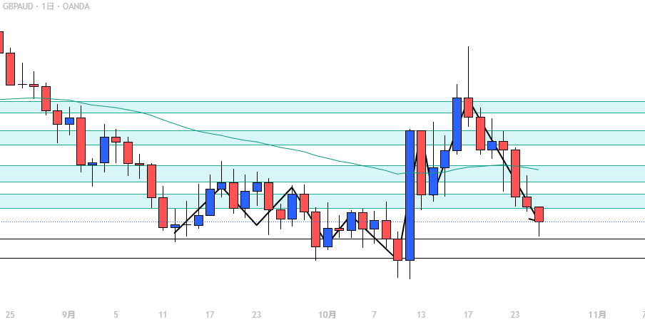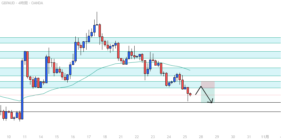 - GBP/AUD: 下目線継続。AOI付近からの戻り売りが有効。