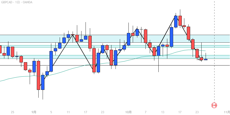 - GBP/CAD: 高値圏で売り勢力優勢。転換の可能性に注意。