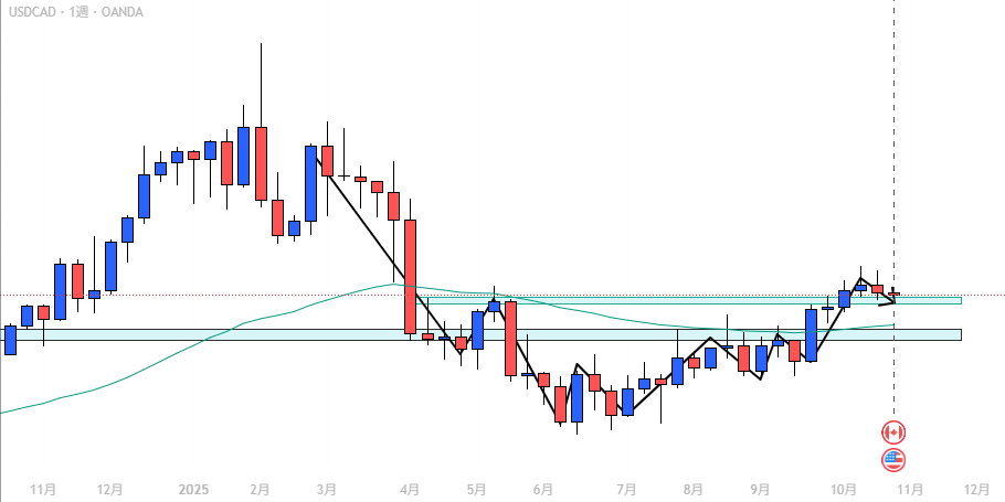 安値を切り上げながら戻り高値を抜け、週足では上目線に転換しました。戻し後にEMAのサポートを受けて上昇する展開が自然なシナリオです。