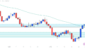 日足も下降トレンドの三尊パターン。 AOI=ネックラインとなっているため、強く意識されやすいポイントです。
