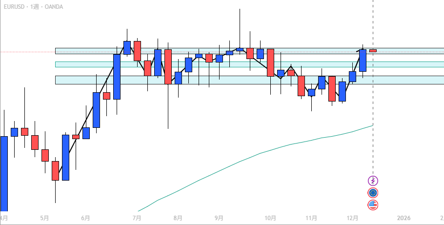 今週はトレンド方向は明確でも、エントリー位置が難しい相場が多くなりそうです。 AOI×EMA×プライスアクションを徹底し、引き付けてから入ることを最優先でトレードしていきましょう。