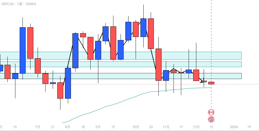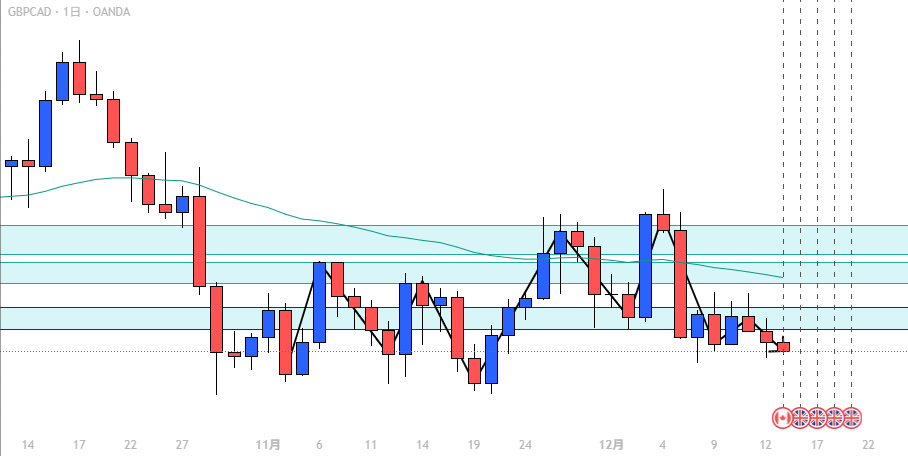 - GBP/CAD: 下降トレンド継続、戻り売り狙い。