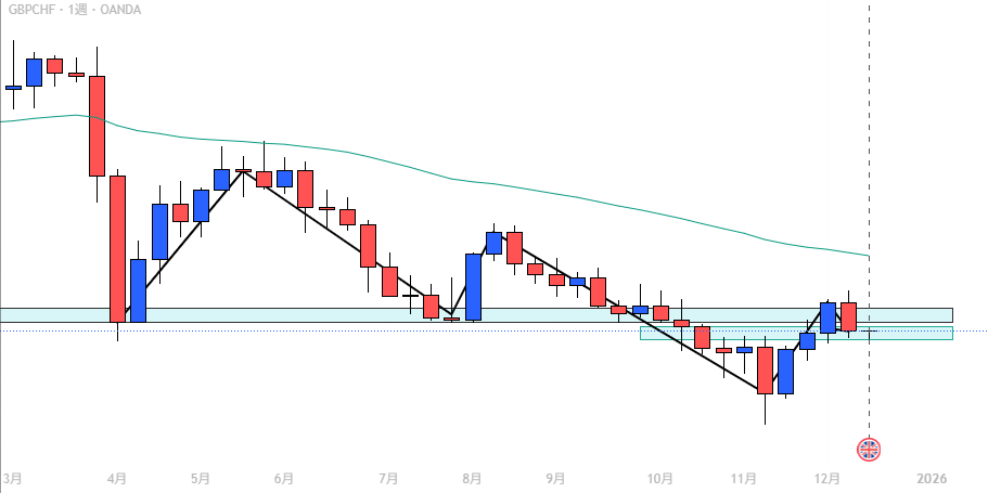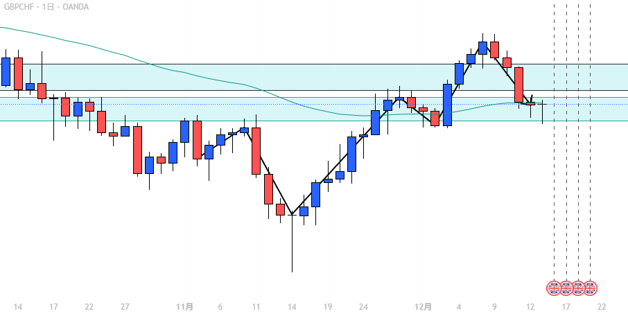 - GBP/CHF: 上位足分岐点、下位足必須。