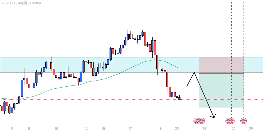 • GBP/USD: AOI・三尊を根拠に下落シナリオが有効。