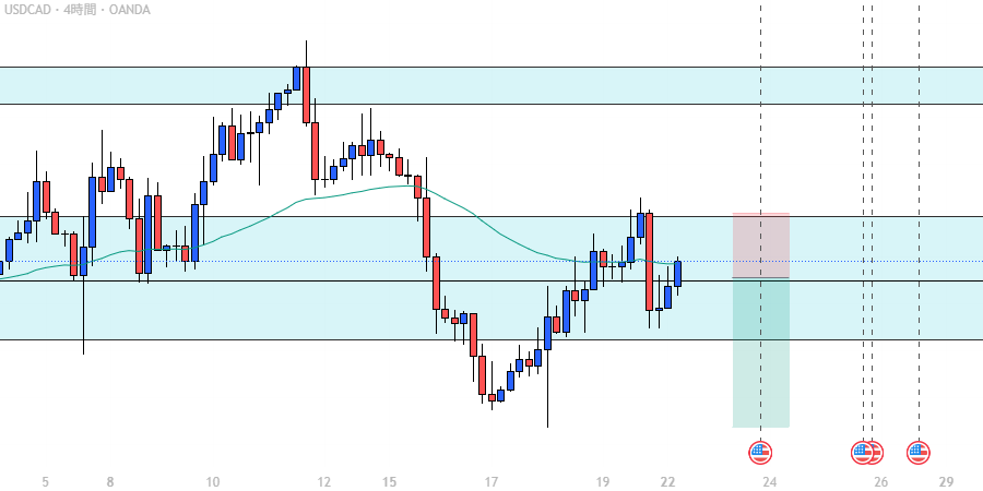 • USD/CAD: 下落優位。週足~4時間足まで下目線揃い。