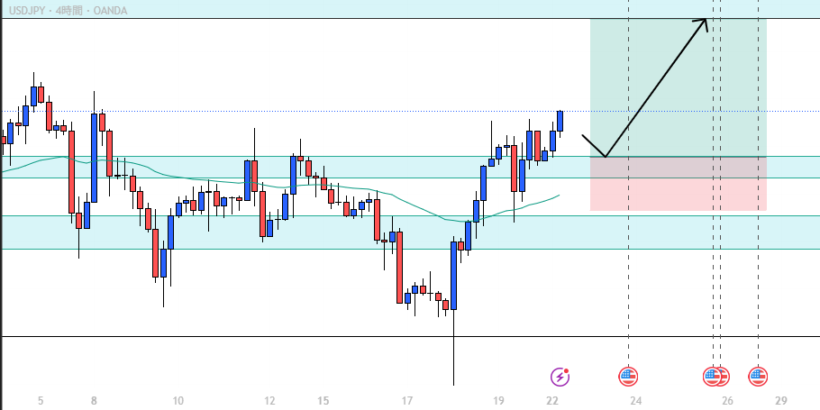 • USD/JPY: 週足は迷いがあるが、4時間足では上昇基調に転換。