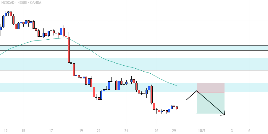 下降トレンド中で、AOIに引き付けてからの売りが有効。NZD/USD同様、EMAとAOIが重なるポイントでの反発に期待できます。