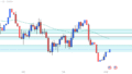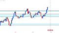 4時間足では下目線ですが、上位足が上昇方向で揃っているため売りは危険。さらに下位足で上昇転換が確認できれば、買いの圧力が高まりそうです。