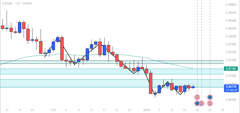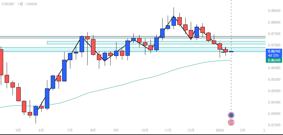 - EUR/GBP: 週足下目線、AOIからの戻り売り候補。