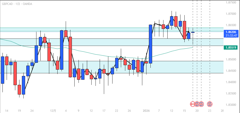 - GBP/CAD: 上位足と下位足が逆、慎重な判断が必要。