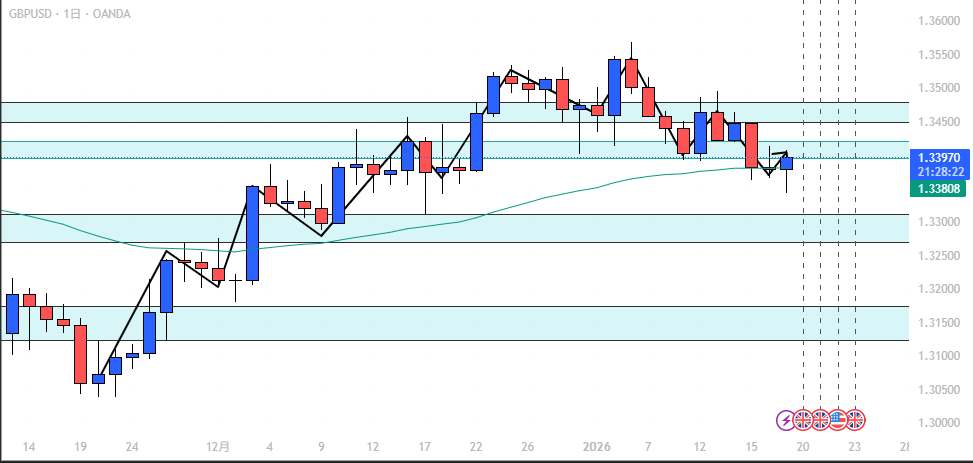 - GBP/USD: 日足第3波、戻り売り優勢。