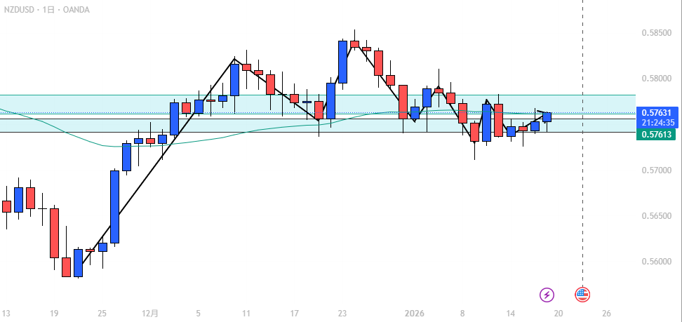 - NZD/USD: AOI攻防、ブレイク待ち。