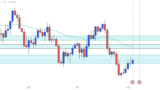 日足では下降トレンドの調整波が出ており、AOI付近に位置しています。 反発があれば売りを検討できますが、週足で十分な調整が出来ていない点には注意が必要です。