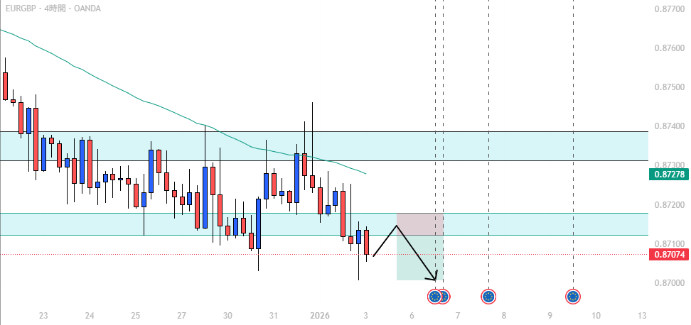 • EUR/GBP: 日足・4H下目線、戻り売り候補。