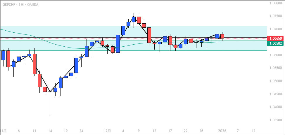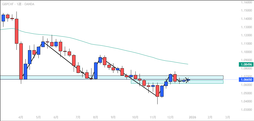 • GBP/CHF: 収束局面、ブレイク待ち。