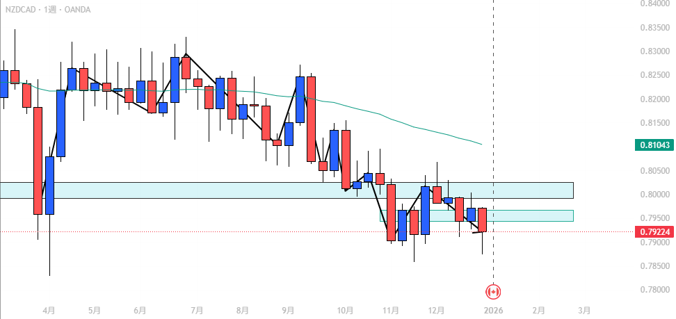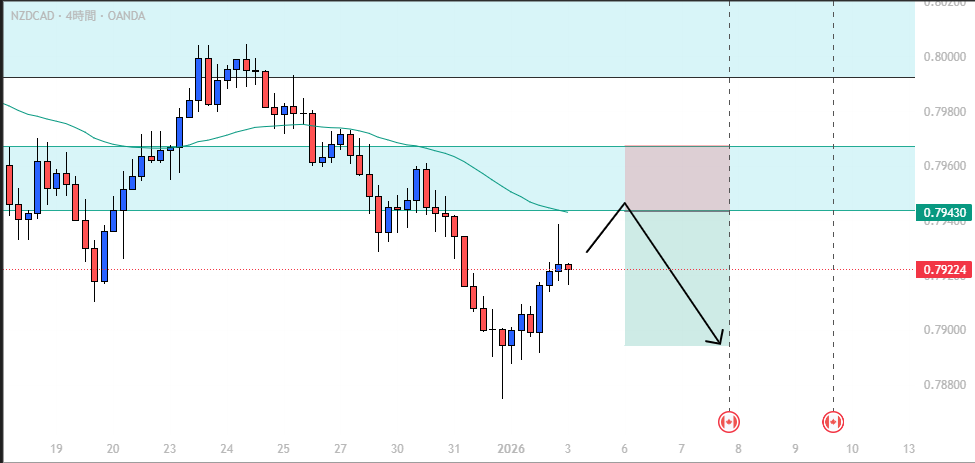 • NZD/CAD: 下降トレンド継続、戻り売り狙い。