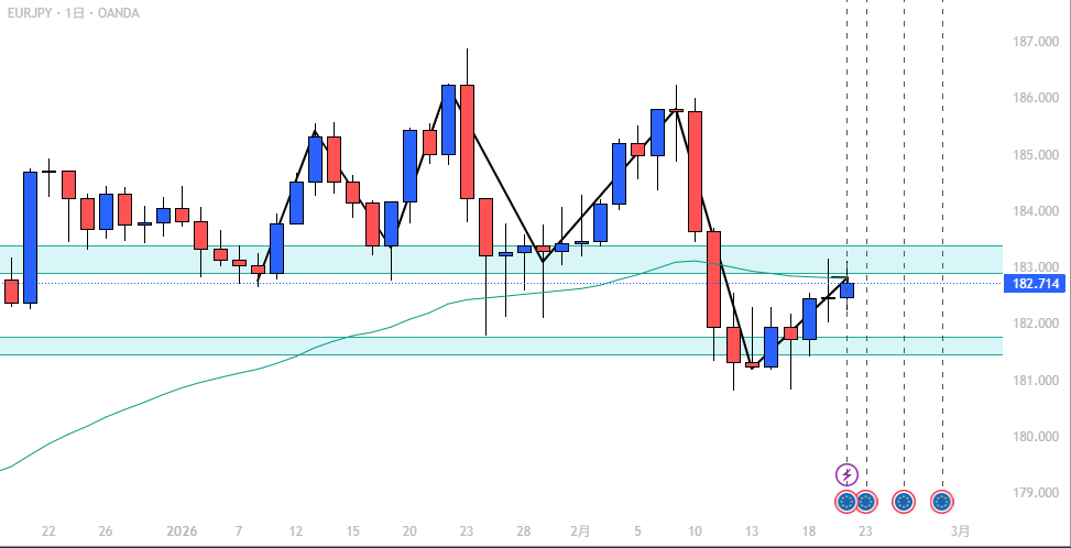 • EUR/JPY: 強い反発候補ゾーン、下落再開に注目。