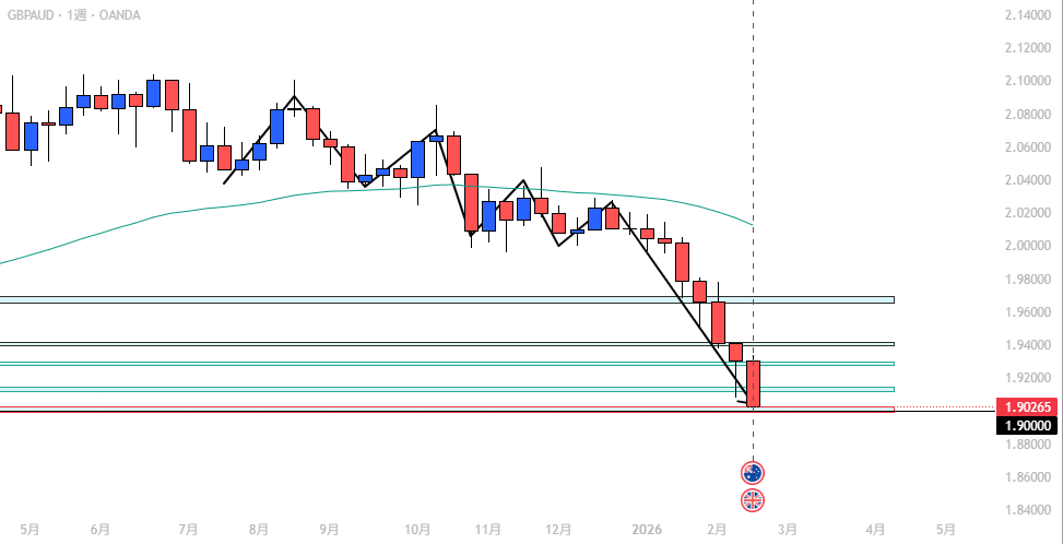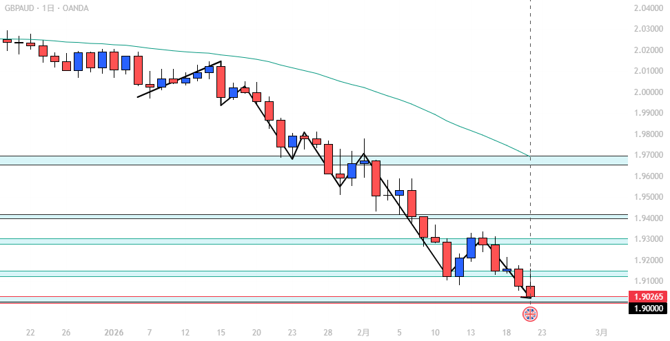 • GBP/AUD: 明確な下降トレンド、戻り売り有利。