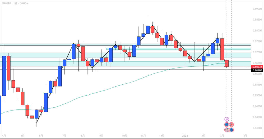 今週は複数時間足で下降が揃う通貨ペアが多く、比較的戦略が立てやすい環境です。