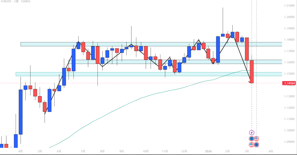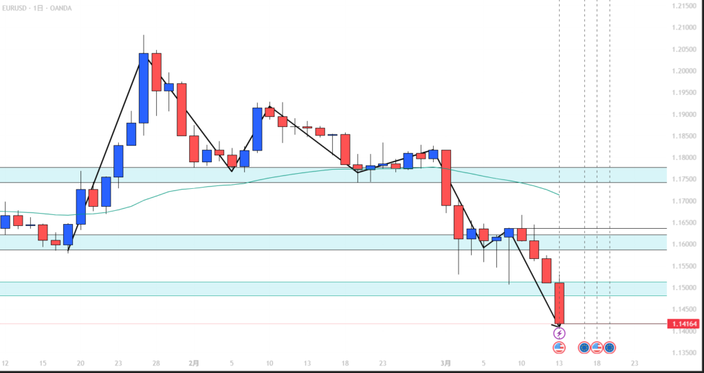 - EUR/USD: 上位足の方向一致、期待値の高い売り相場。