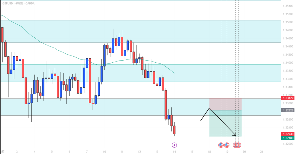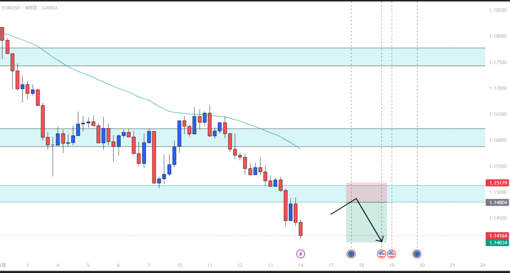 売り目線のトレーダーが増えると考えられ、大きく動き出すタイミングに注目です。