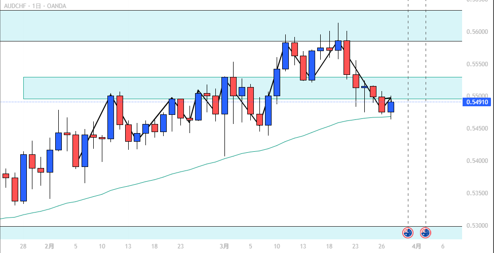 1. AUD/CHF(豪ドル/スイスフラン)
