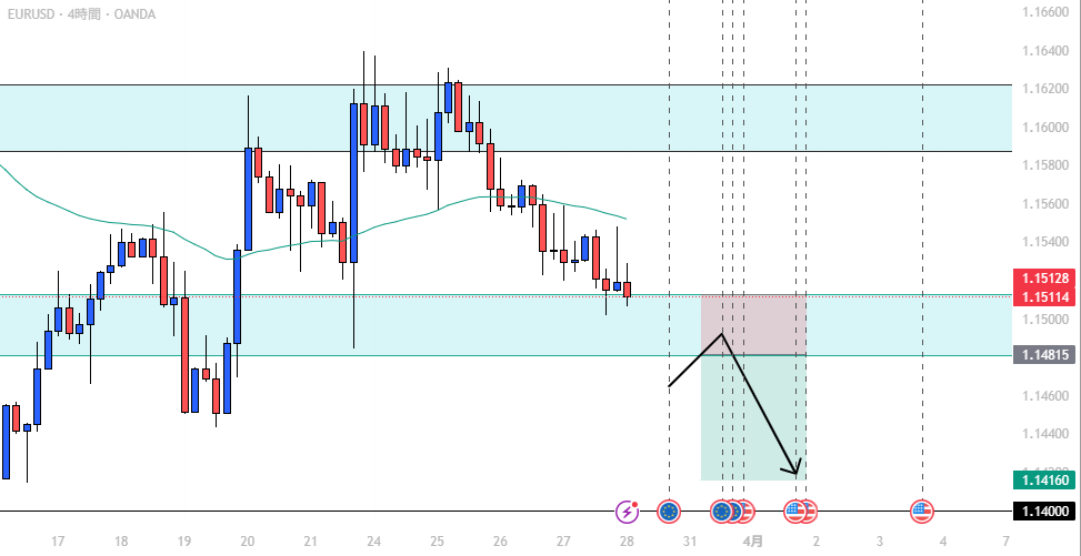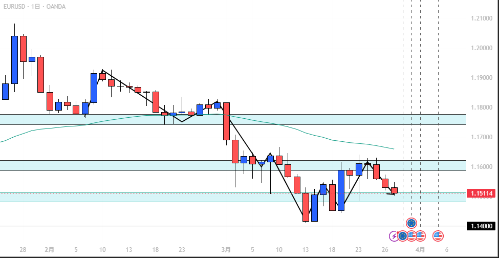- EUR/USD: 全時間足一致、下降トレンド継続。