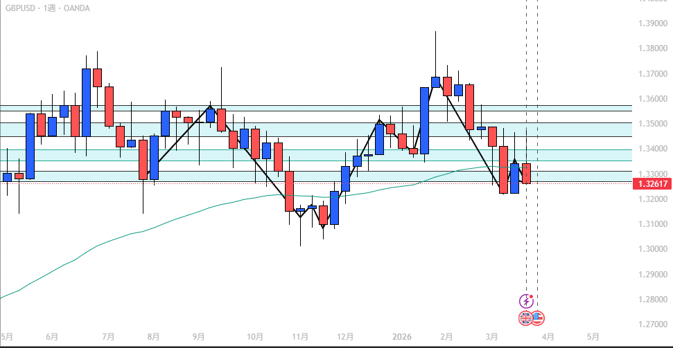 AOI・EMAも下回っており、今週も下落継続に期待できる形です。