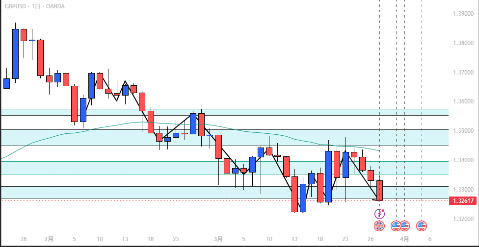 - GBP/USD: 安値更新狙い、下抜けに注目。