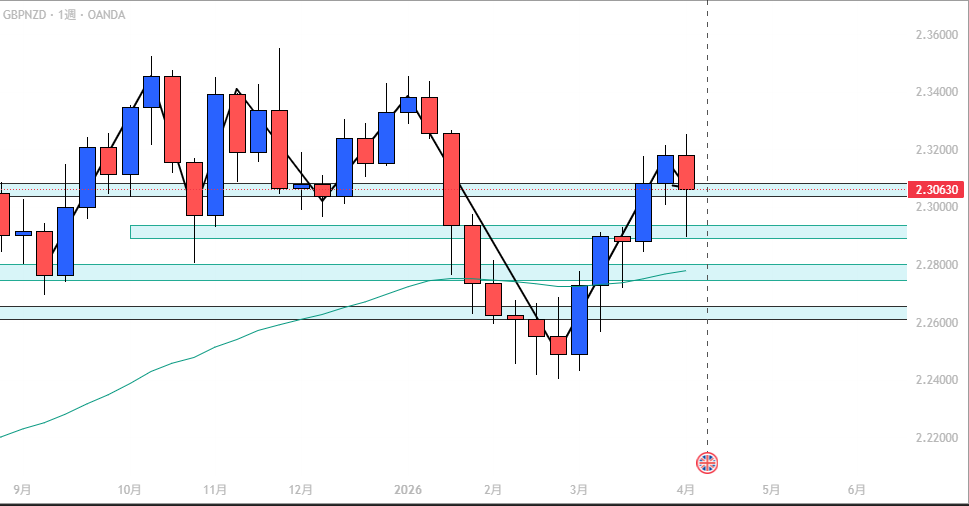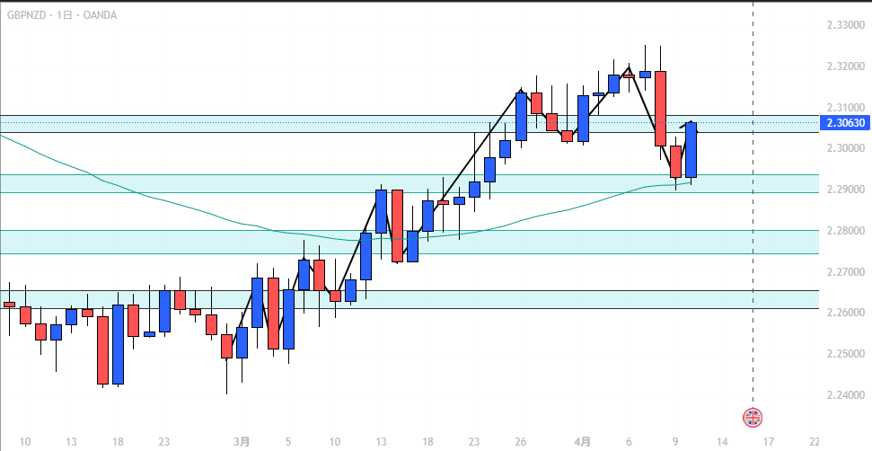 • GBP/NZD: 三尊形成の分岐点、方向見極め。