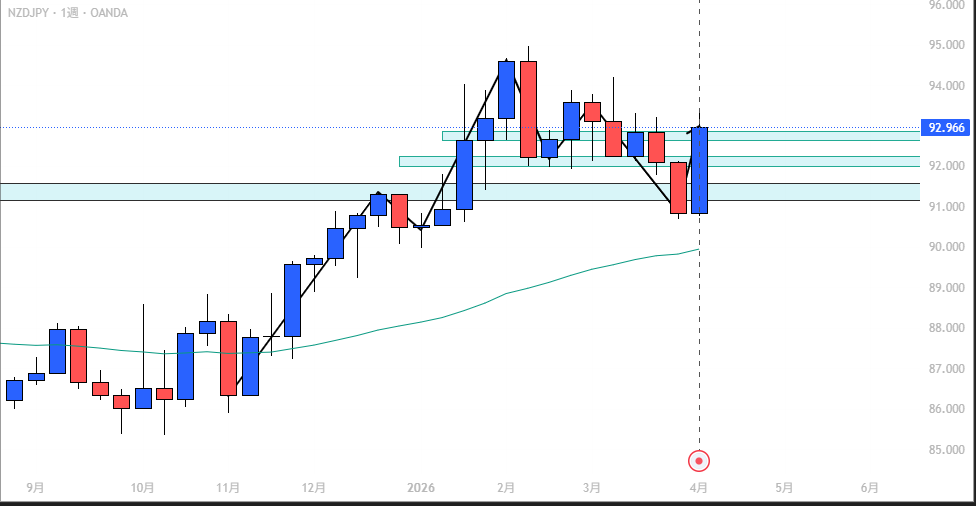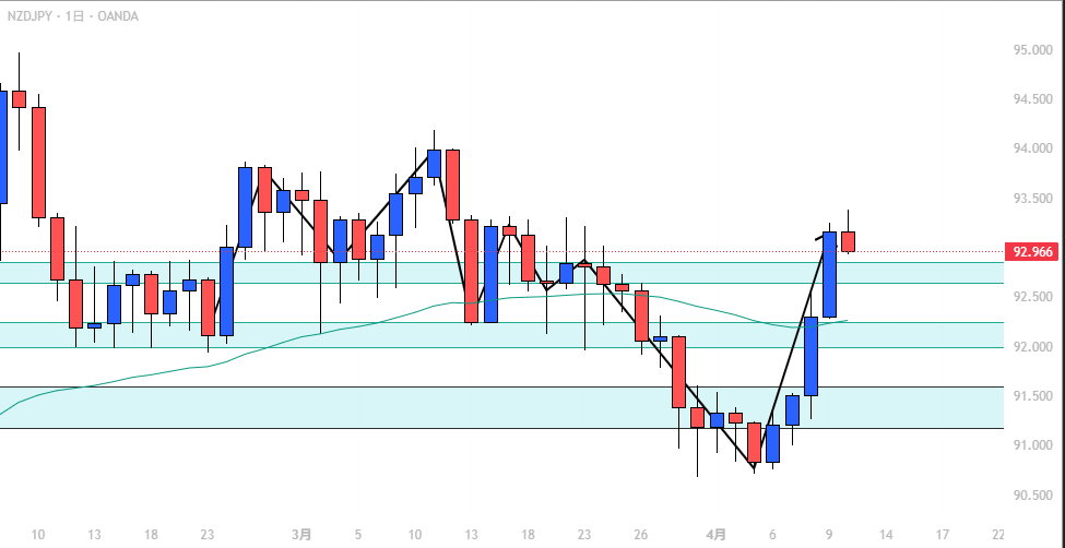• NZD/JPY: 上昇再開狙い、押し目待ち。