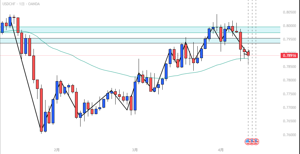 • USD/CHF: 戻り売り優勢、下降トレンド継続。
