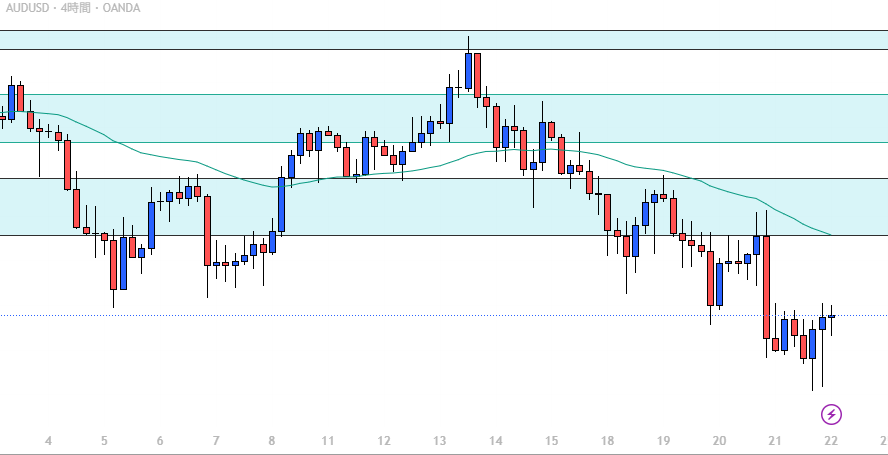 もう少し強い戻しが入る可能性もありましたが、AOIが綺麗に効いて下落。 ただし安値更新には至らず、レンジ気味の展開に入っています。
