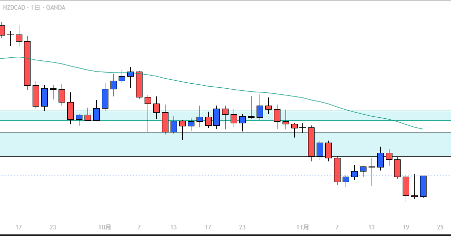 - NZD/CAD: AOIで抵抗 → 綺麗な下降継続。