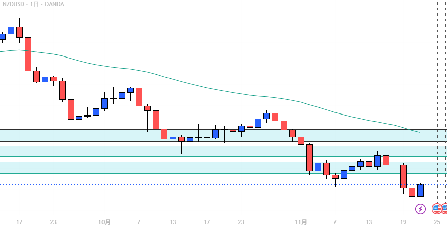- NZD/USD: AOI反発→三尊から大きく下落。