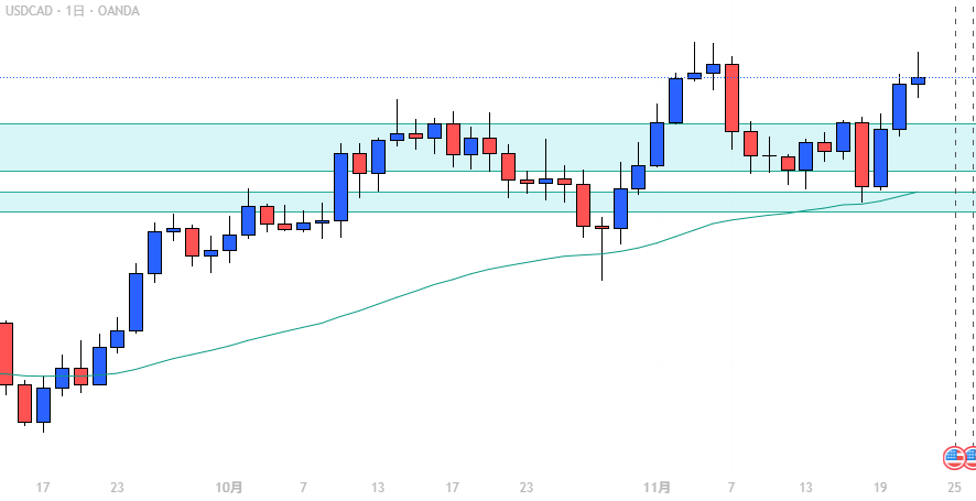 - USD/CAD: 下位AOIとEMAのサポート→上昇トレンドへ。