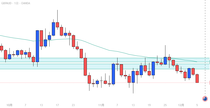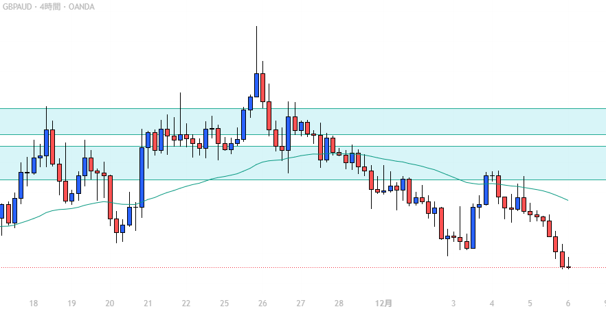 • GBP/AUD: 分析通り下降。三尊形成でさらに下落期待。