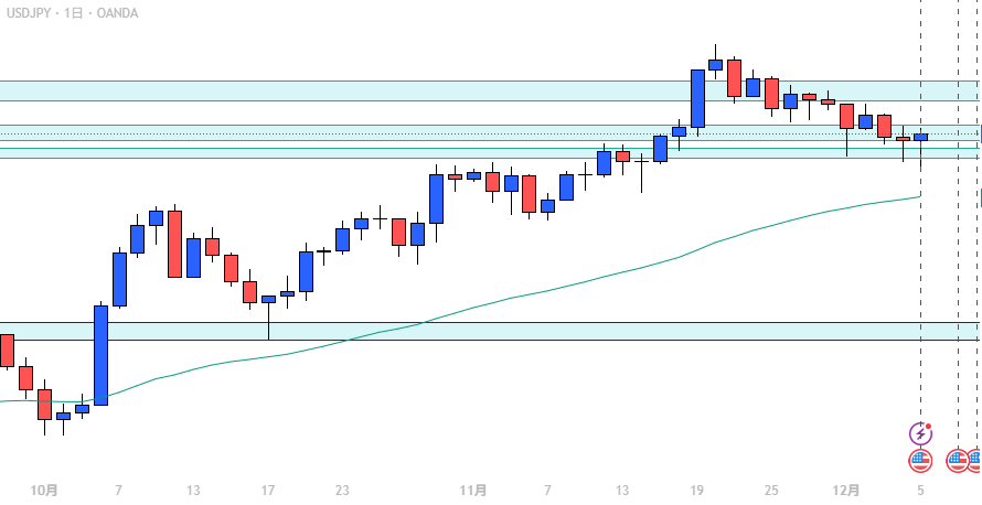 • USD/JPY: 深めの調整 → 逆三尊形成の可能性あり。