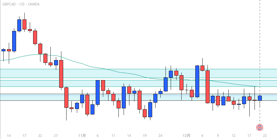 - GBP/CAD: 方向感なし、ブレイク待ち。