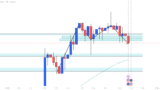 4時間足ではトレンド転換後、上昇トレンドが継続していました。 ただしAOI付近でイブニングスターが出現して週を終えているため、下位足での下降転換を確認してからエントリーを検討したい局面です。