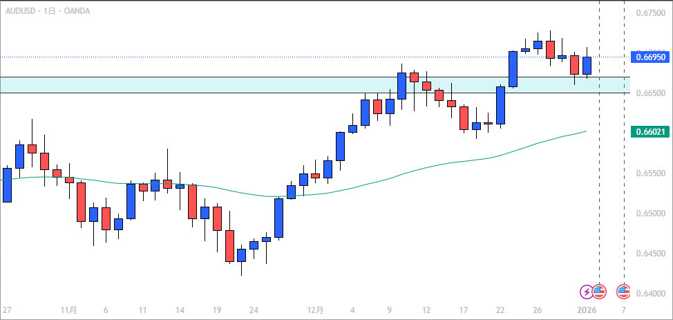 - AUD/USD: AOIで想定通り反発。高値更新への期待が高まる。