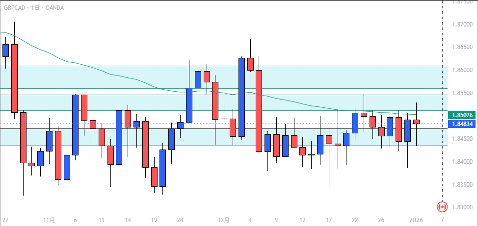 - GBP/CAD: 方向感のない不安定な相場。年末相場らしい値動き。