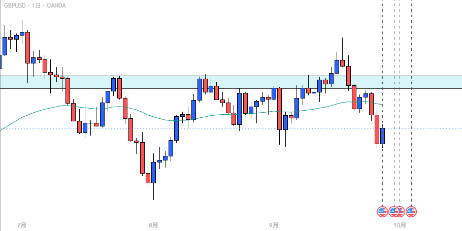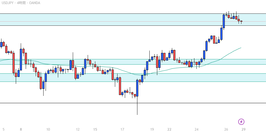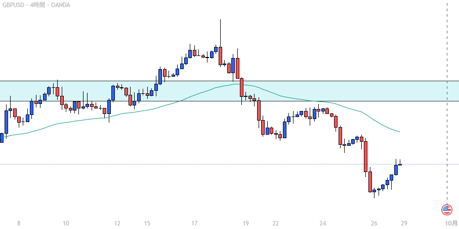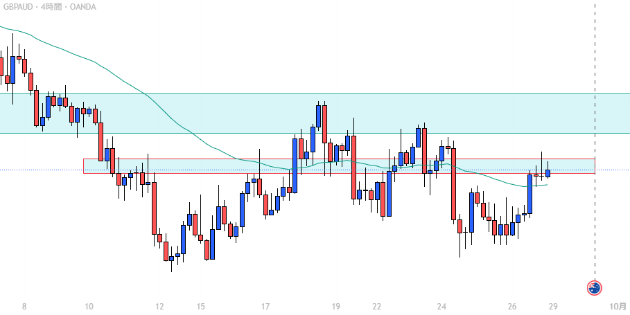 一度大きく戻して目線が変わりましたが、その後再び下落。現在は4時間足のAOIに位置しています。この辺りは何度も意識されているため、今週も何らかの反応が出る可能性が高いです。