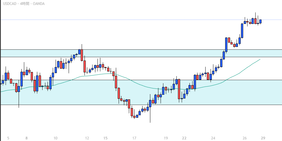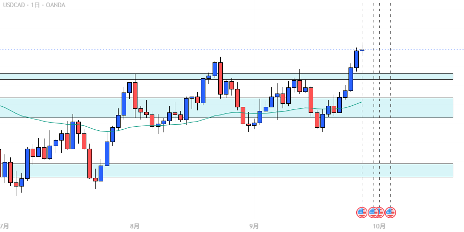 - USD/CAD: 三尊否定から逆方向に大きく上昇。