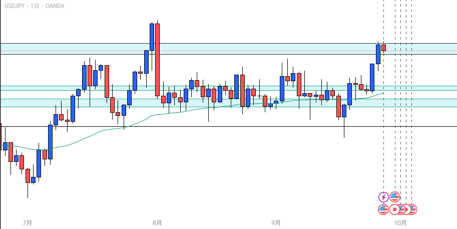 - USD/JPY: AOIサポートからきれいに上昇継続。