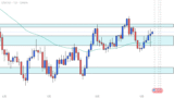 AOIでレジスタンスされ三尊の右肩形成を期待していましたが、結果的に上抜けて上昇転換しました。AOIでレジサポ転換すると、さらに上昇していく可能性もありそうです。