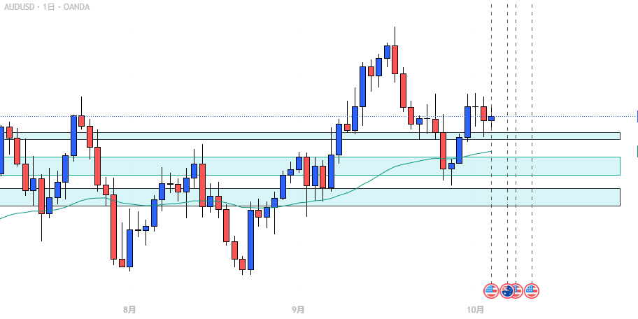 - AUD/USD: AOI反発で強い上昇。上位足も上方向で安定。